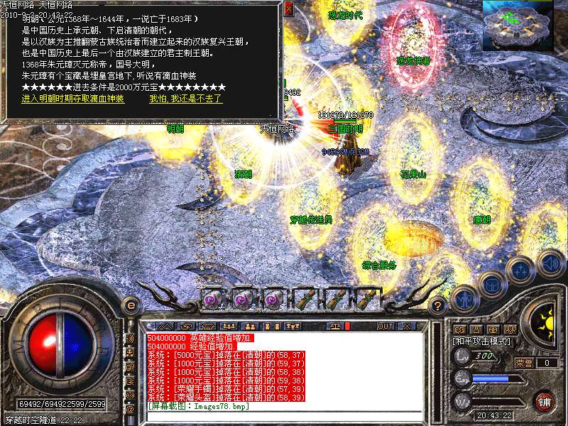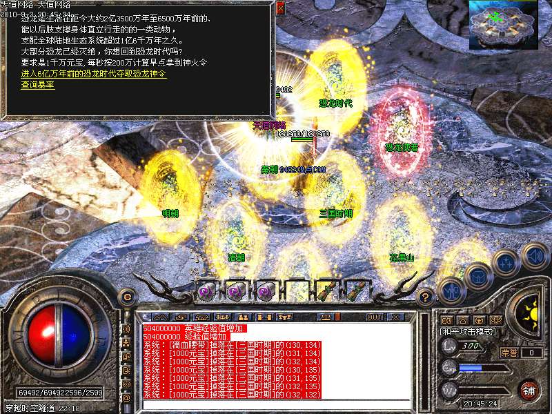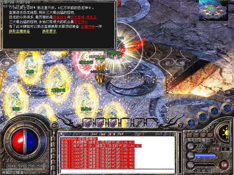 恐龙时代★:此地图是扣元宝地图,200万/秒,里面有个三大怪叫星星恐龙,恐龙首领,恐龙王.杀死此三怪必暴(恐龙神令)有了此令可以享受超低价格换取本服顶级装备一件,多去此地图,多给GM财路