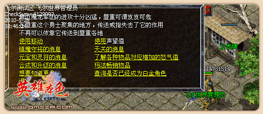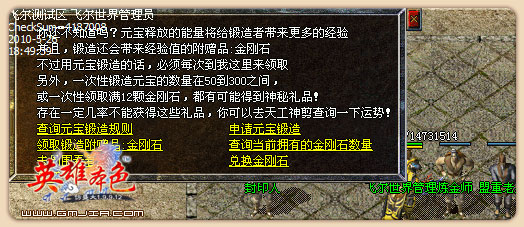 由于意外原因(如服务器遭攻击死机等)或不可能抗力的因素造成服务器回档,我们不承担任何损失,请玩家谅解!如果发现有人恶意捣乱,辱骂管理员,不管你是不是RMB玩家,一律封号封IP。
