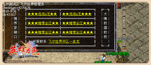[37,146]恭喜发财一区一区独享100M光纤,与精品电信机房长期合约,让玩家有个工作之余、闲暇之余惬意的游戏环境不卡屏,不花屏,决对的正版服务器。