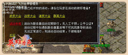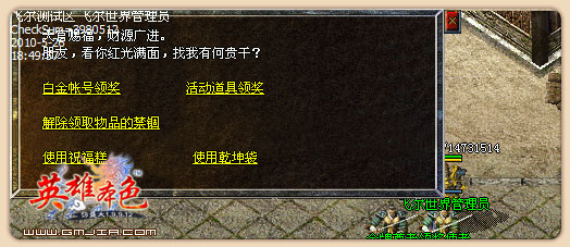 服务器不定期删除20天内没有登陆过的游戏账号,和48级已下的人物,如玩家要保存装备,必须把账号练到48级以上!!