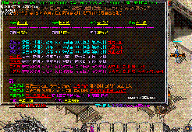 新地图.装备.副本.进入条件以及合成材料请到土城酒馆处查询.排行榜捐献每月1号.10号.20号清零.奖励丰厚详情查看土 爵位捐献