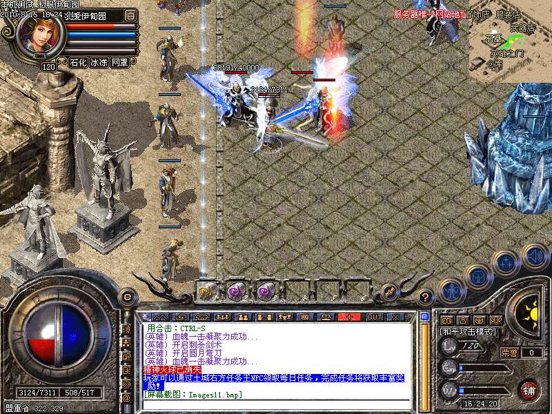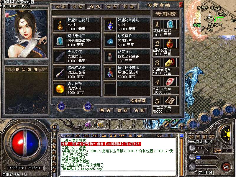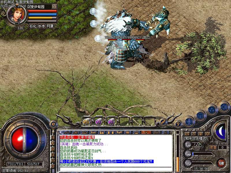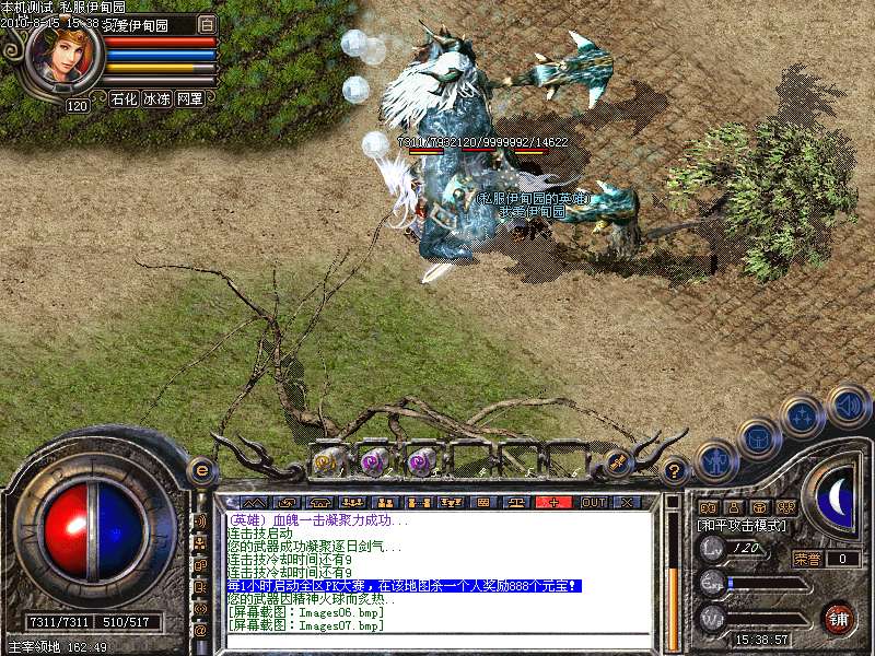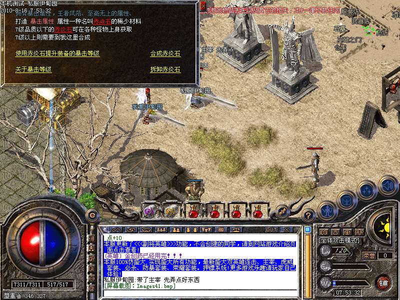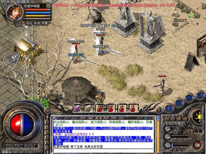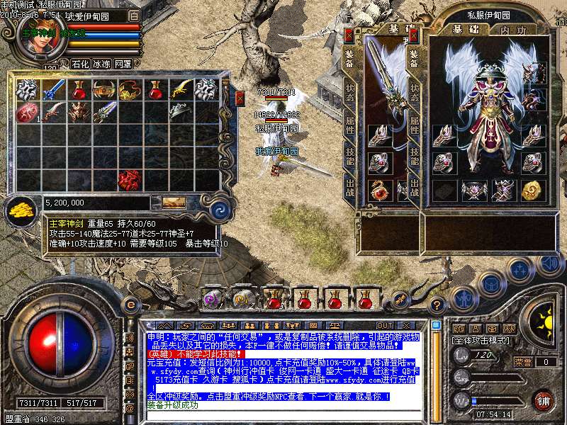 100%仿盛大,实现盛大所有功能,最新盛大双英雄连击、主宰、虎威套装、必杀、辉煌、荣耀套装。押镖系统!更多游戏乐趣请玩家自己体验!