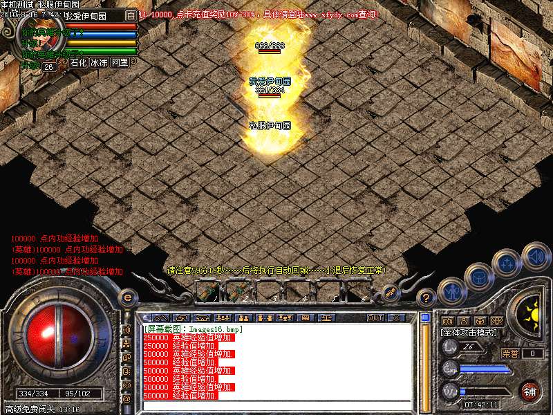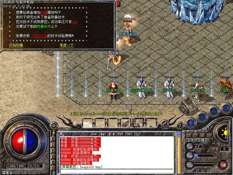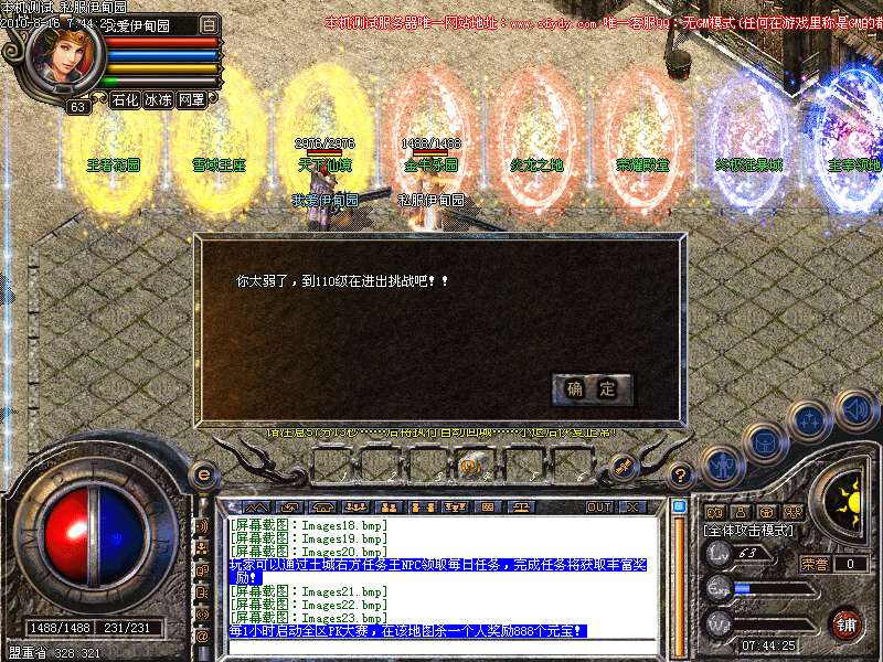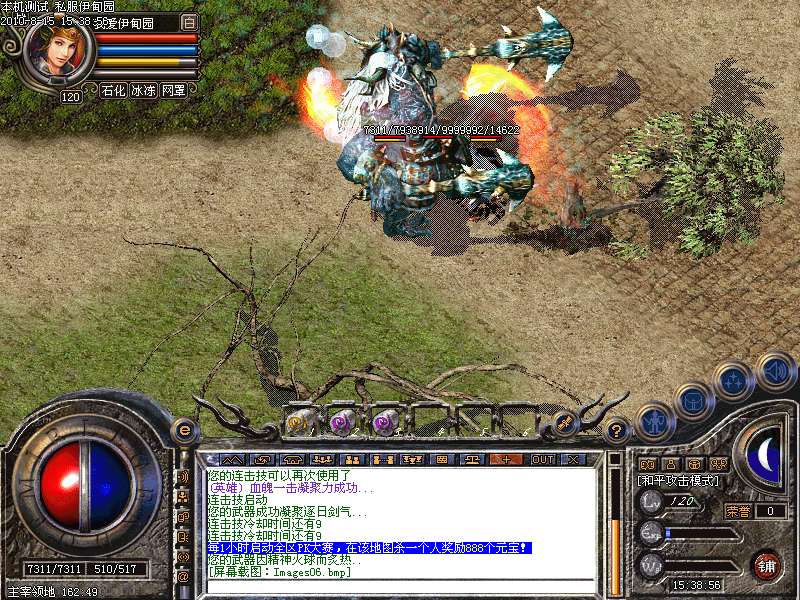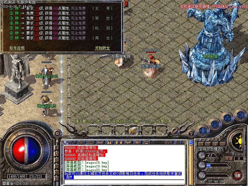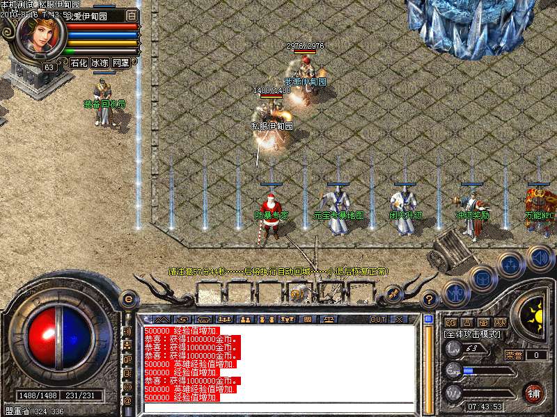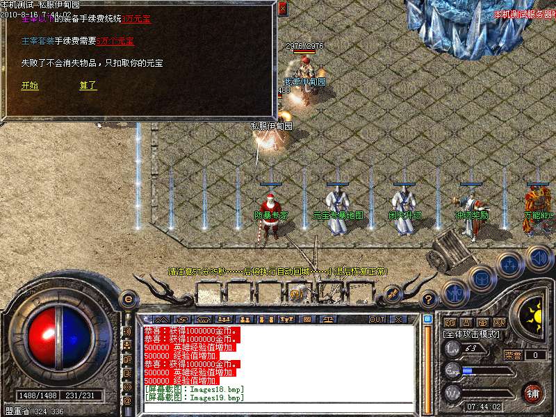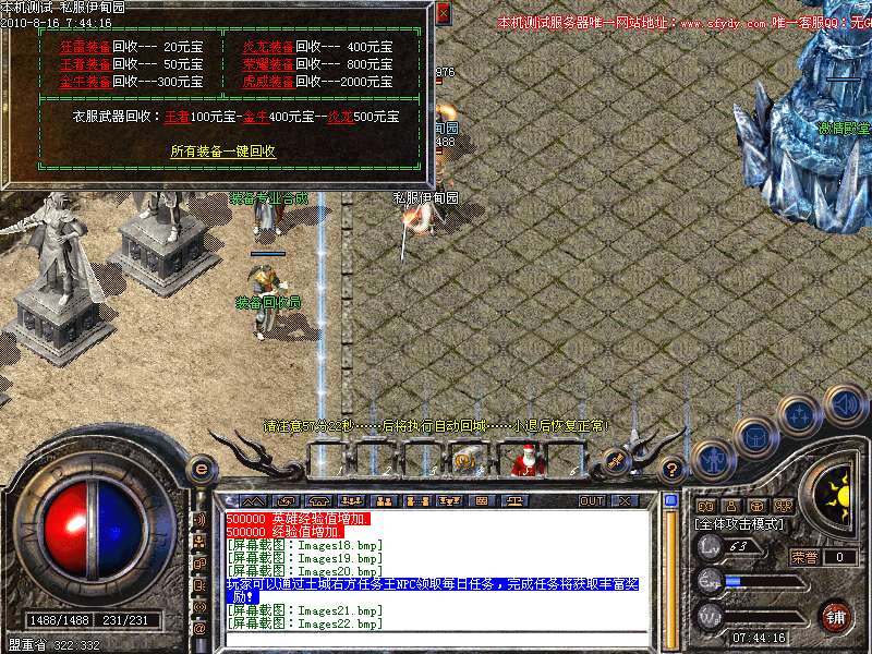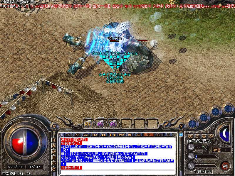 本服务器新区首次拿沙奖励城主500000元宝!沙奖励在22点5分至22点15分找城堡守卫领取!