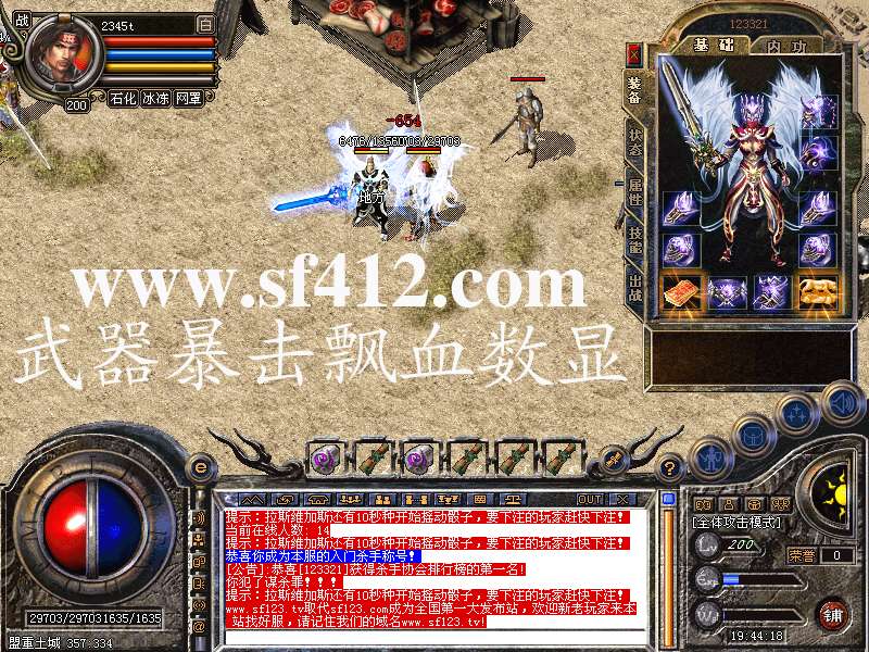 主号,四级烈火剑法。更新赤炎石增加武器暴击飘雪数显!