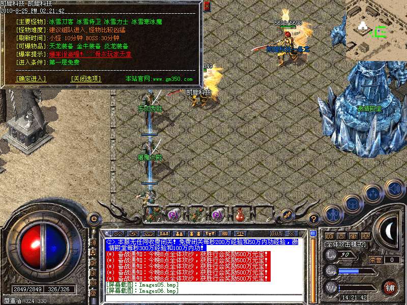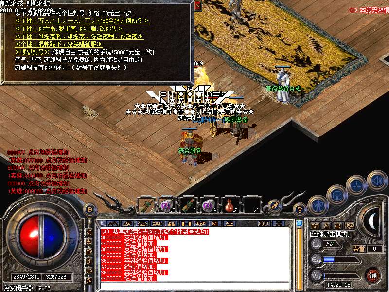 激情殿堂: 打初中级装备,另外进入本地图可和免费闭关一样自动获得100万经验和内功经验!
