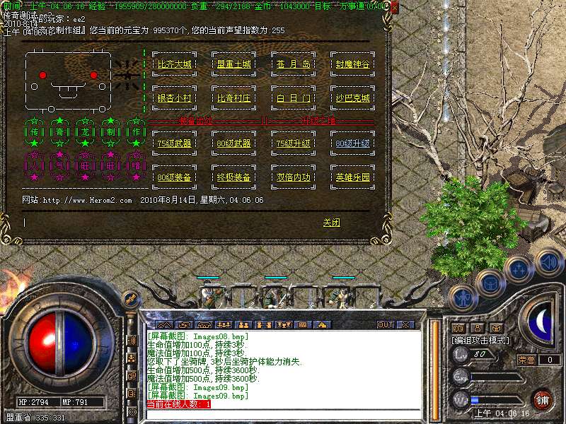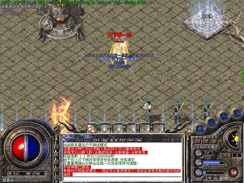 2010.08.05 增加了新手练级地图 30分钟升75级,40级自动送装备,60级自动送装备。