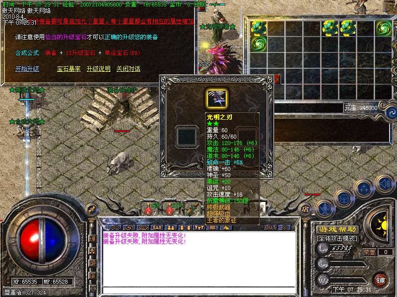 你可以在商铺买加属性的勋章和特殊装备打怪速度快很多