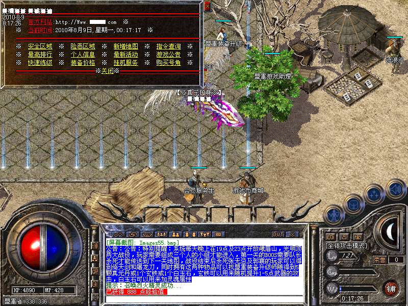 公告:高级装备攻略→上古合成(比奇城)→上古镶嵌(白日门)→2转装备(终极炼狱最后一层),每天中午12点30分举行年兽BOOS攻城,有几率爆出新技能