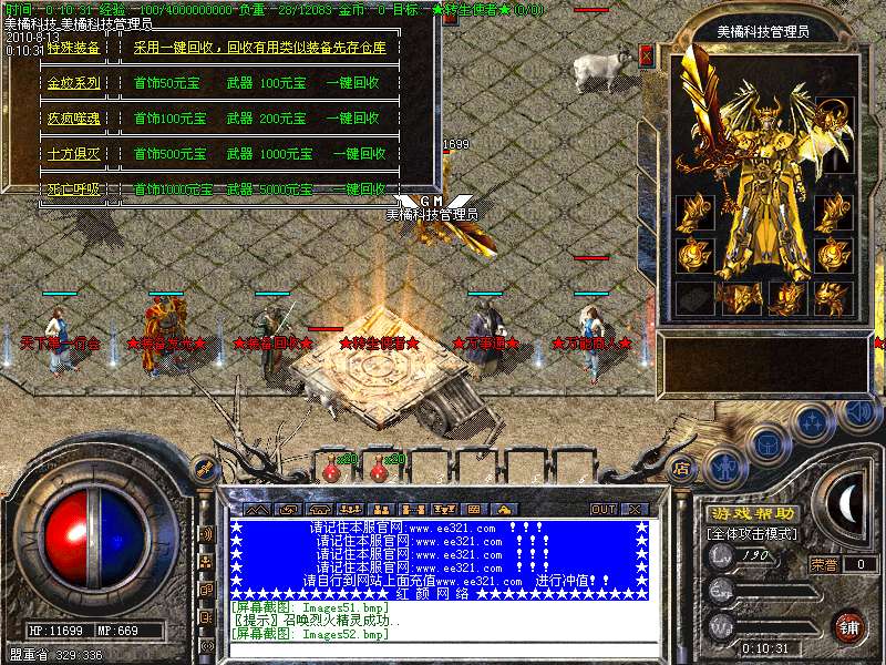 到新地图打BOSS除了可以直接爆元宝外还可以爆装备回收 本F装备回收价格高并且爆得多!