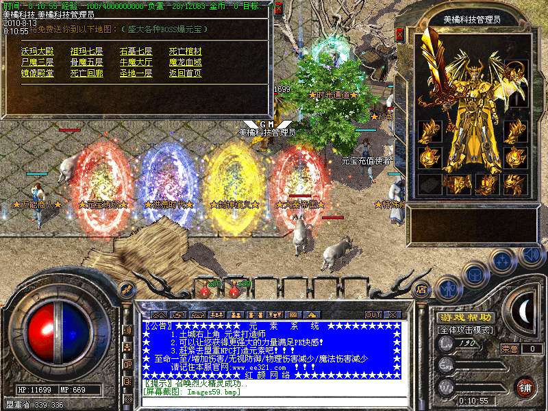 每隔半小时休息地图、比奇皇宫、封魔皇宫都会刷财宝猪、大BOSS爆元宝和好东东