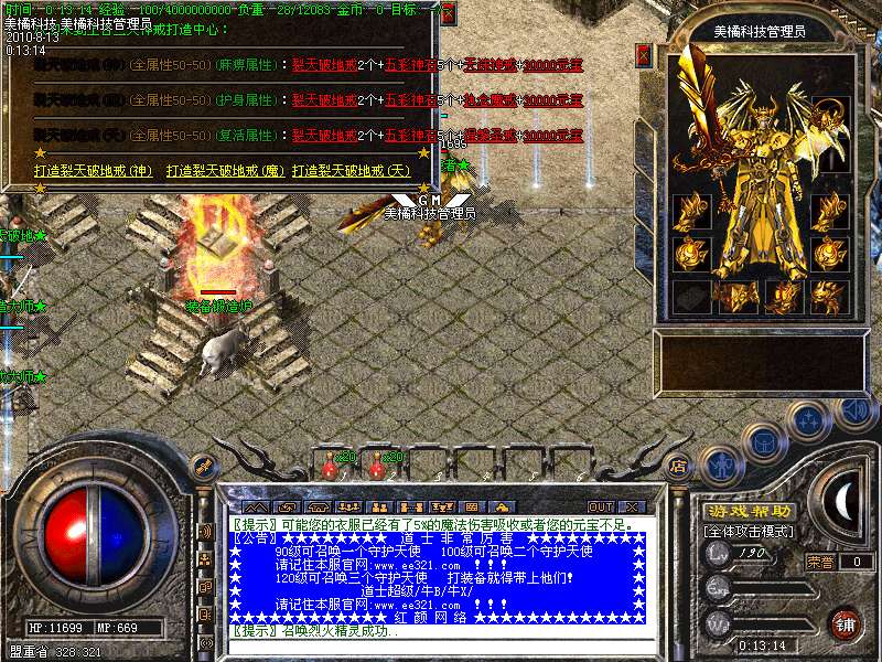 [道士宝宝]:本F道士升到90级召唤守护天使一个、100级二个、120级三个!非常厉害!