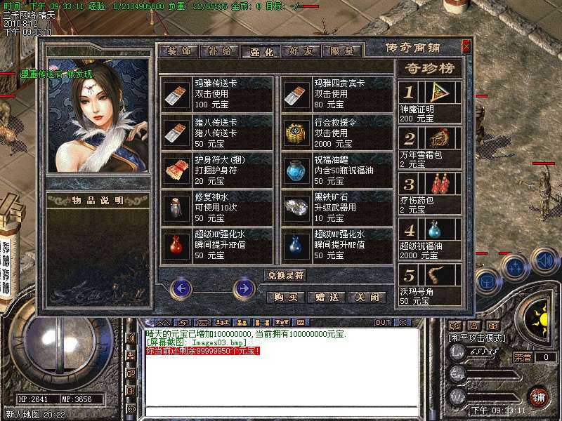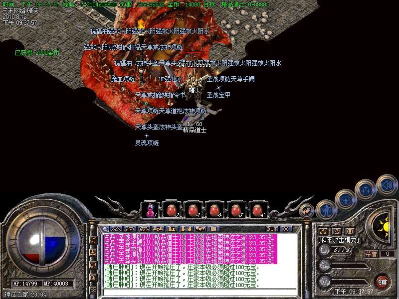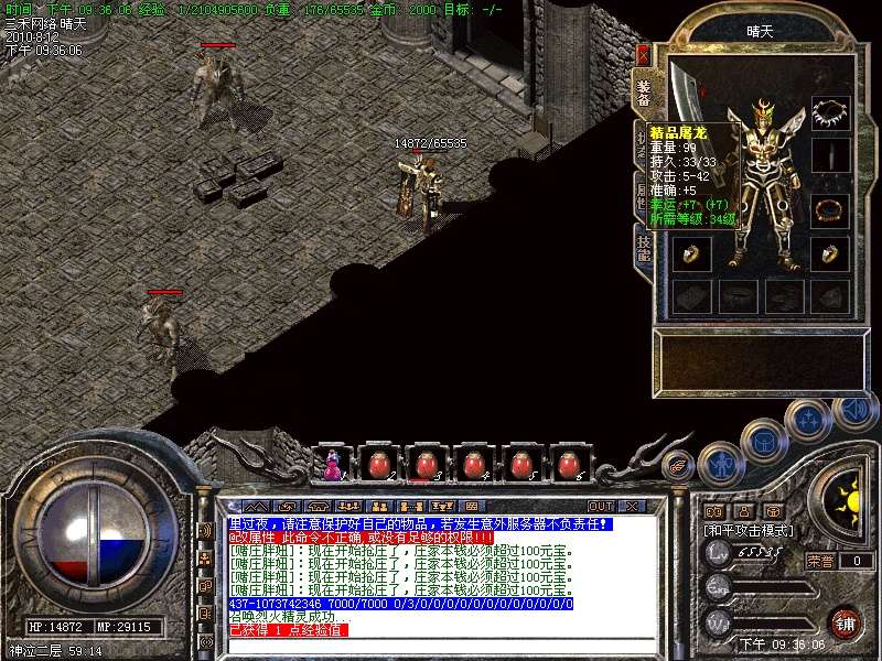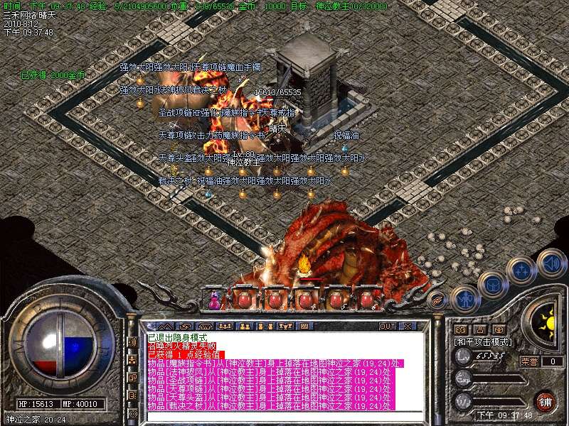 5.系统每90分钟自动在土药刷出神龙,爆终极装备,每天凌晨定时清理天下第一数据.