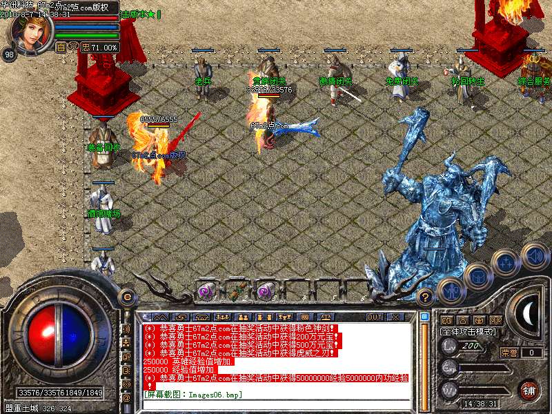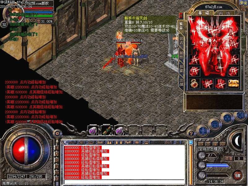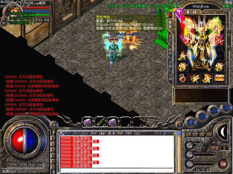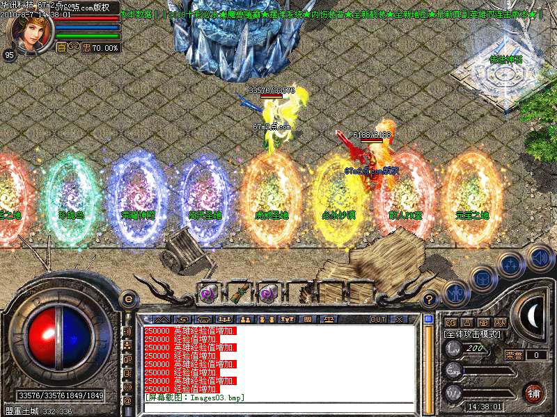 激情殿堂:每秒1200万经验200万内功经验!(可PK区域,可挂到本服顶级200级,内功255级)