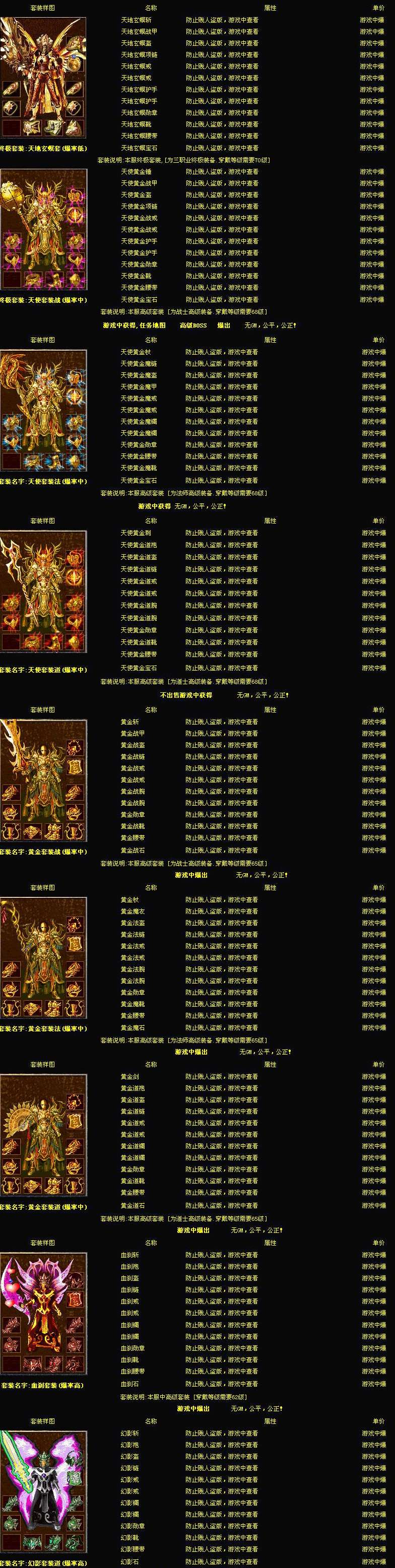 ⑤绿色山装可以爆出基本的新手装备比如 : 开天 镇天 玄天 等系列套装