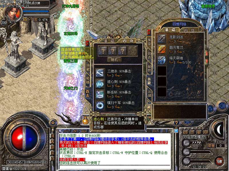 3. 内功技能等级提升.升级自动修炼到满级.不必自已修炼