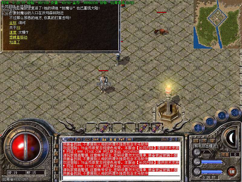 很复古的版本,所有的地图都靠跑,比如去土城必须要从毒蛇跑!装备也都全部靠打,这样的F如果养起来,比任何F都赚钱!有眼光的GM要注意了哦!