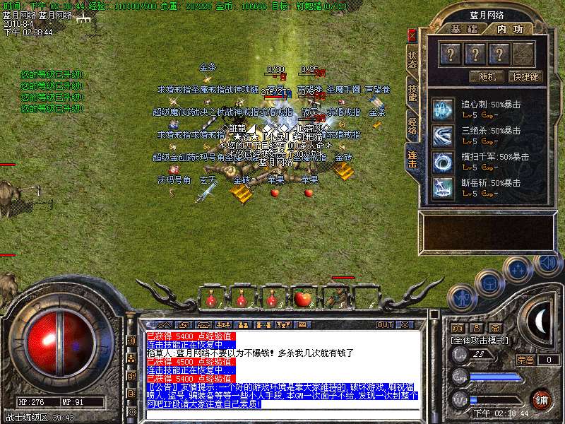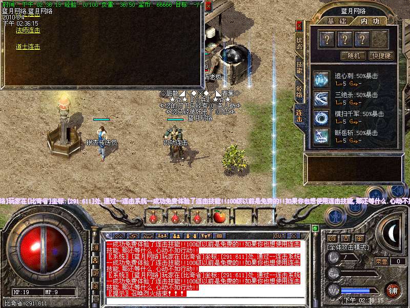7.新增加:荣誉大战,每天晚上8点准时举行,杀一个人奖励50元宝!