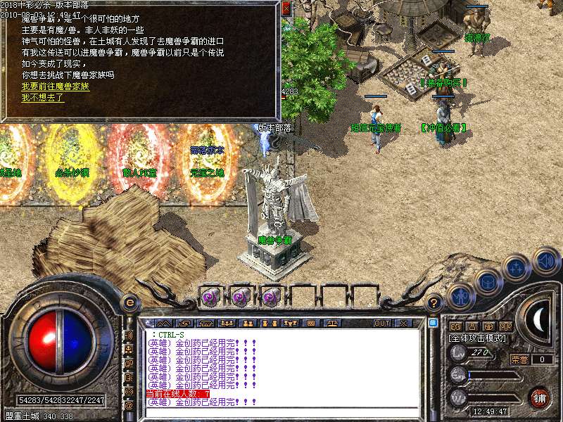 - ☉ V8引擎传奇端游【荒域专属单职业九大陆】Win一键端+配套补丁网站+架设教程