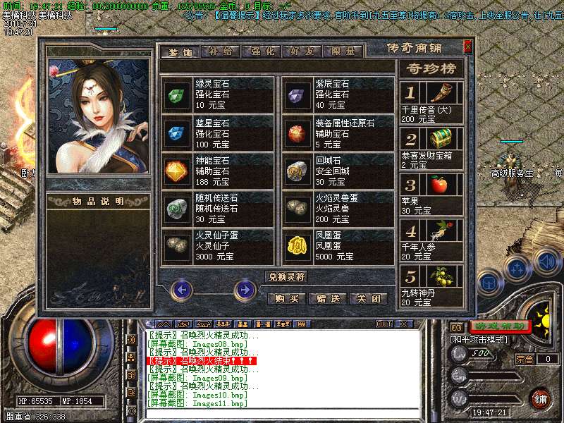 ?商业介绍: 千年雪霜包  元宝商店  摆摊系统