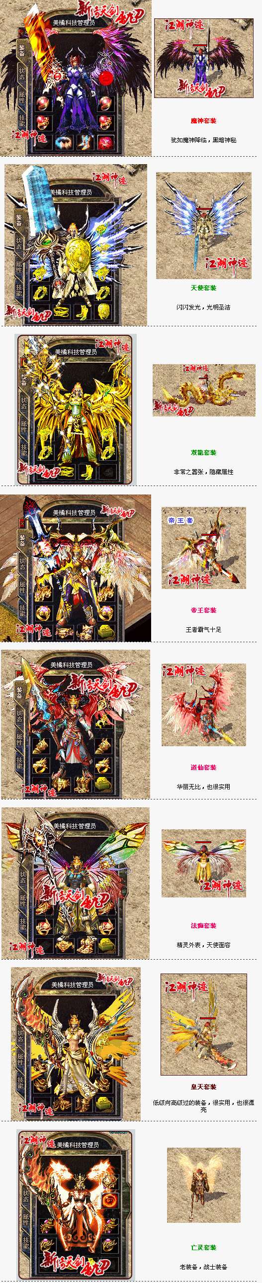 新增装备: 天使套装  魔神套装  双龍套装  六大门派神器