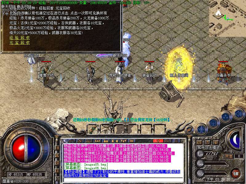 【装备回收】玩家打出来的赤月装备及各种火龙,古侠都可回收.可以在土兑换NPC那里换取经验和元宝.