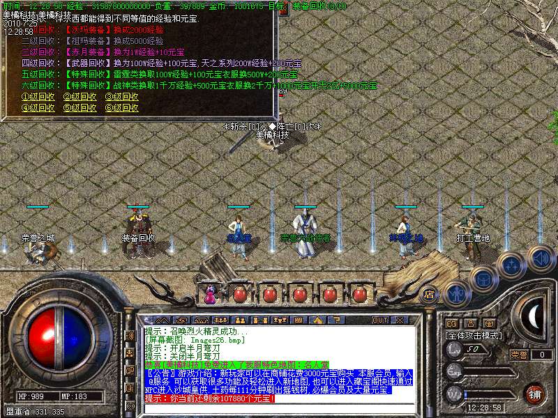 游戏介绍:新手可以在商铺购买2只宠物宝宝卷,轻松练级和打装备,各BOSS所出装备可以在NPC回收元宝.