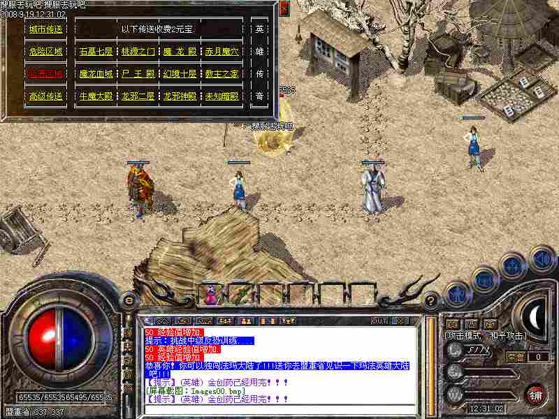 强烈建议:50以前幻境、未知。50级以后去火龙地图打元宝,赤月装备