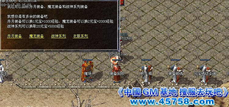 元宝出处: 为了照顾普通玩家,本F元宝好打. 各地图容易打到赤月,魔龙装备,普通玩家可在土城的装备回收NPC回收没收的装备赚元宝,元宝之地狂爆元宝,地狱十六层狂爆元宝, 普通元宝一天至少可打到700+元宝