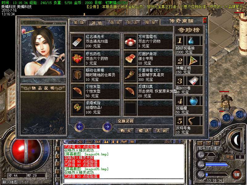 【装备回收】祖玛以上级别的装备都可以在土回收经验和元宝.让没用的装备也有它的价值.深受玩家之喜好.