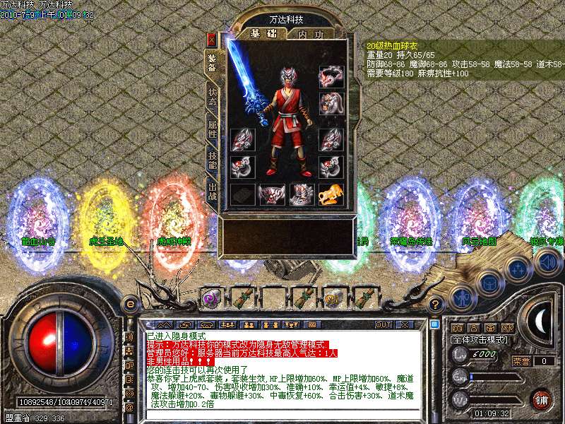 激情殿堂:每秒1200万经验200万内功经验!(可PK区域,可挂到本服顶级180级,内功200级)