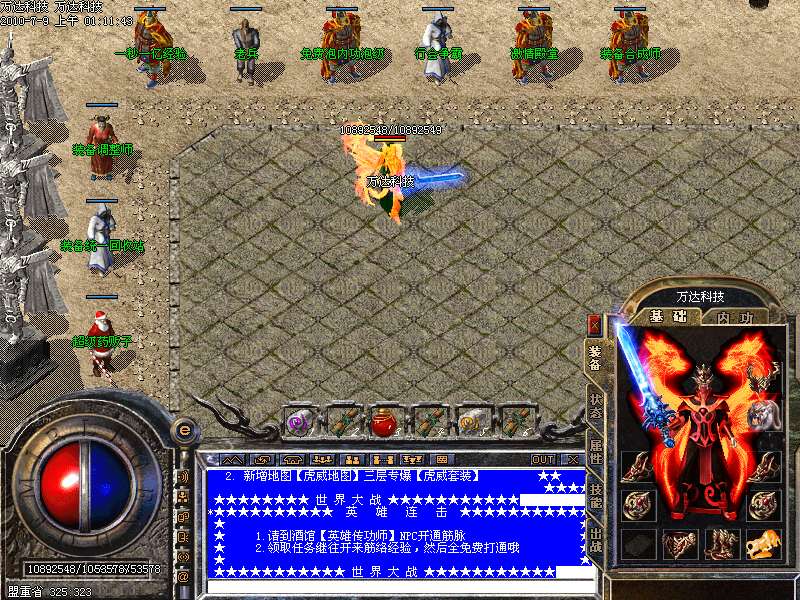 ②.天下第一:每天下午3点,土城左上角进入,最后一个离开获得"天下第一剑"和500万元宝!