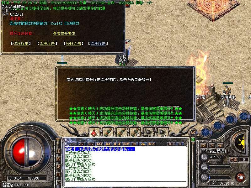 <255,252>【游戏特色】本服所有物品均有爆出,地图的一角及书页本服所有怪物都有机率爆出.书页可以土城合成高级技能书,包括乾坤大挪移.护体神盾.擒龙手.逐日剑法.开天斩.无极真气.气功波.噬血术.灭天火.流星火雨等