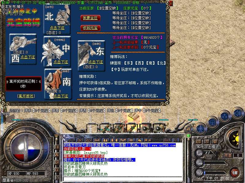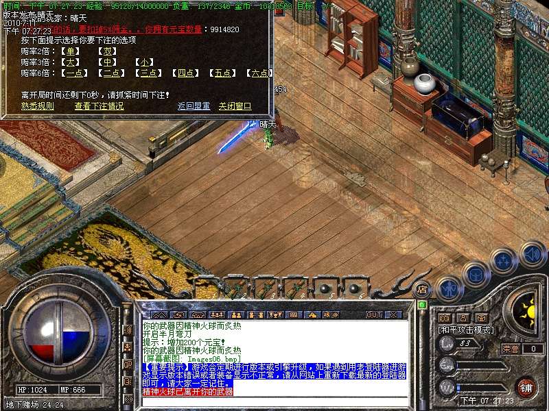 <255,252>【游戏更新】更新元素系统,和东南西北赌博系统,修改了加入雇佣兵不能转生的问题,更新的最新盛大的虎威套装,和倚天剑,此剑带终极技能倚天劈地!