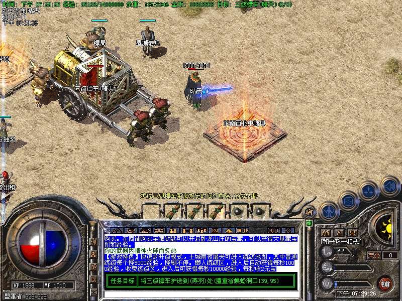 <255,252>【游戏更新】第十版开通押镖功能,与盛大同步的押镖系统,是发家致富的头选!
