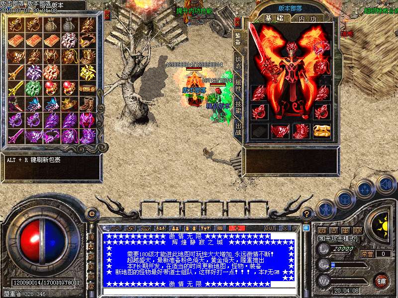游戏介绍⑩: 全新的游戏面貌,与盛大同步,定期更新游戏,绝不会让您感觉游戏单一性.