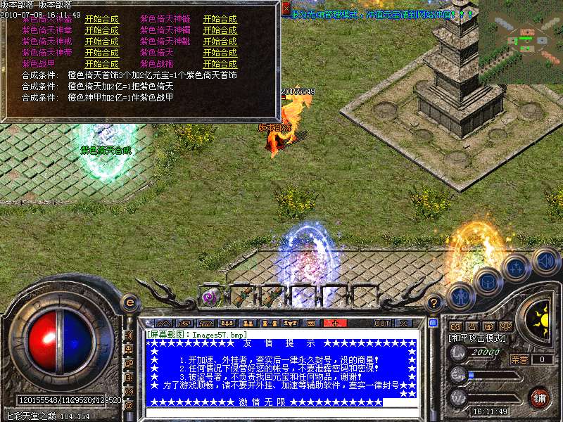 游戏介绍④: 更新新地图七彩天堂之巅 必杀山庄 紫金宫殿 顶级狂暴城 虎王极地 虎威圣地......