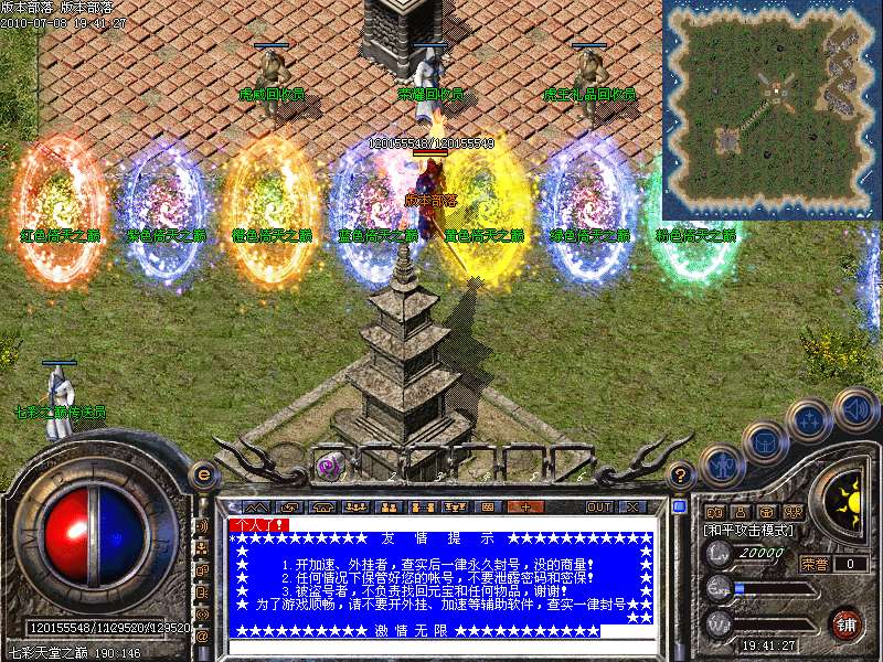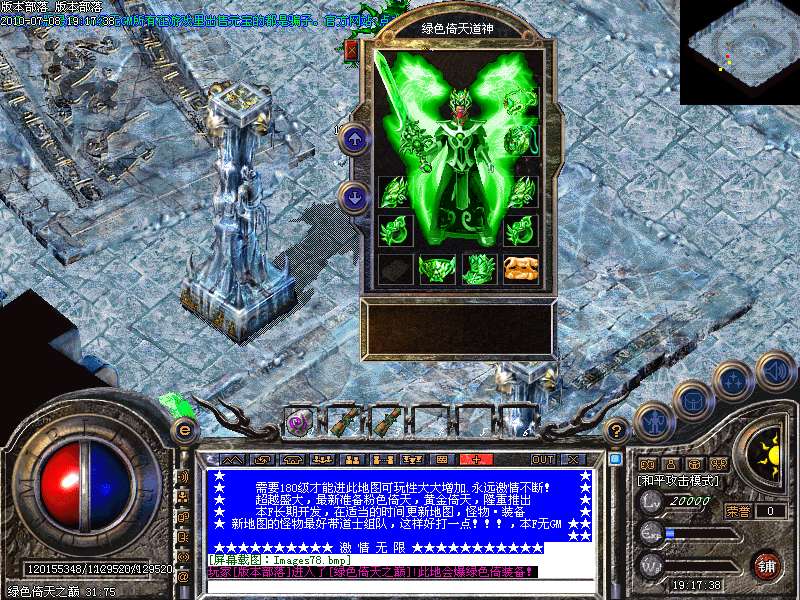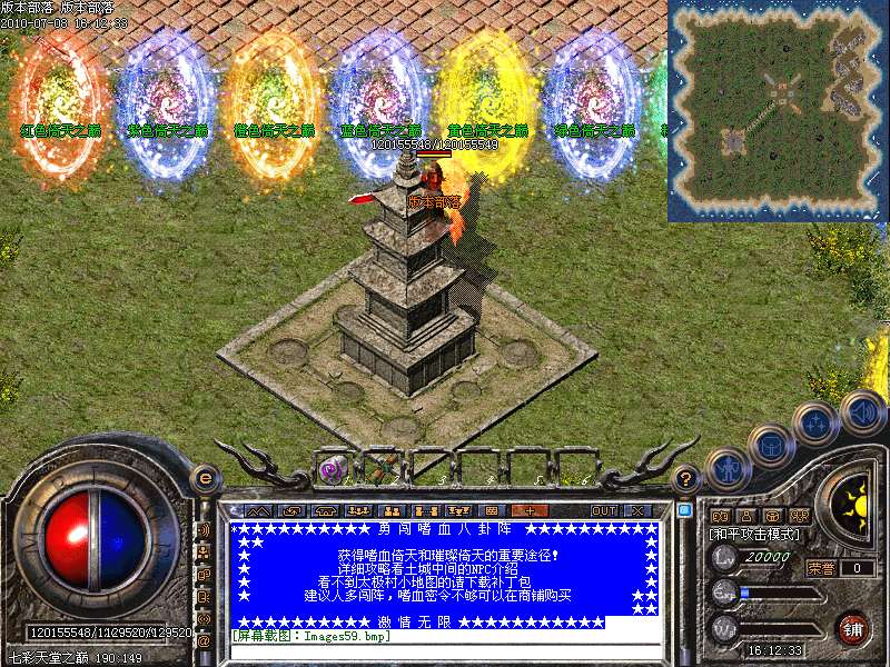 增加最新地图:七彩天堂之巅。此地图分7个地方。分别可以爆出七彩装备!