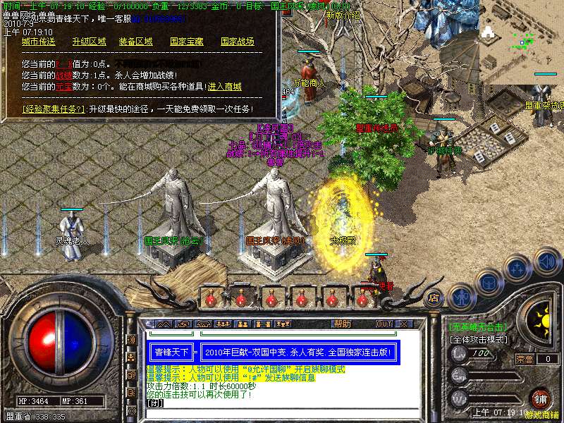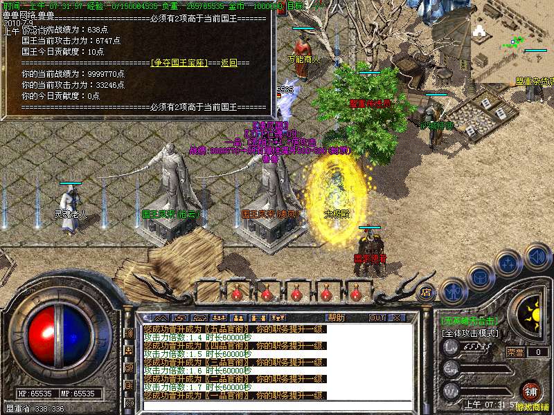 [国战系统]:每两小时轮流开放1次,每次半小时,每30秒能获得大量经验和荣誉,杀死敌国玩