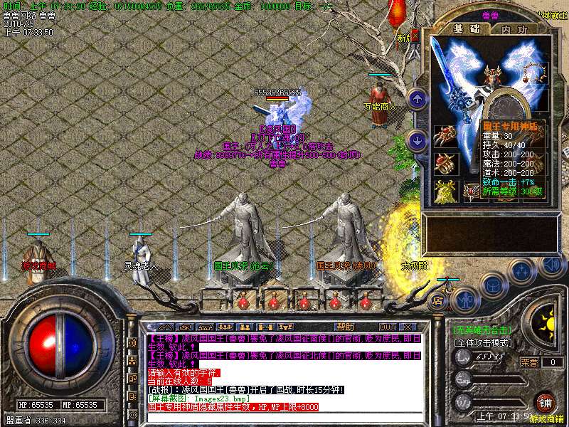 [国王系统]:三职业可在土城申请国王.申请后可以册封本国玩家官员!
