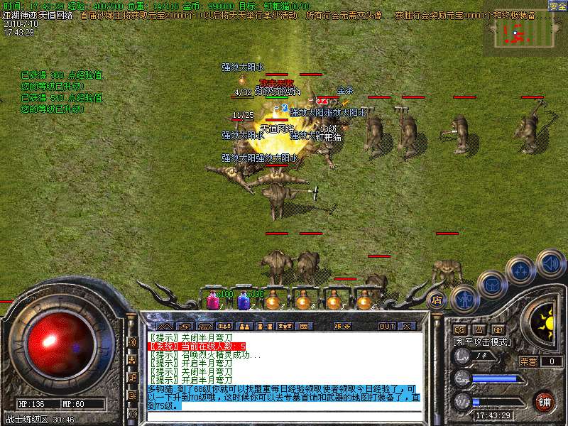 [群英系统]:每天晚上19:00举行.30分钟后结束.胜利的玩家将上线1.1倍攻击和大量的奖励!!!