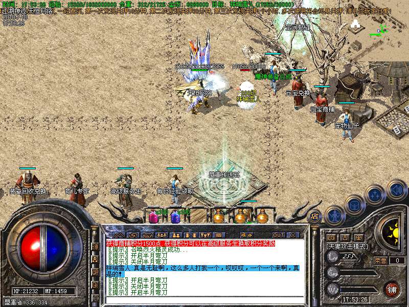 [幸运挖宝]:玩家可在土城武器店购买鹤嘴锄到挖宝之地挖宝.可获得各种药品奖励!!!