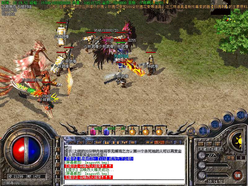 [宠物系统]:玩家可用灵宠神石进行喂养圣兽.此宠物带群攻.绝对是练级的好帮手!!!
