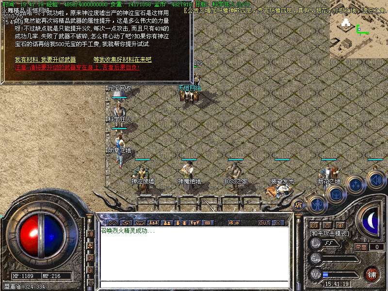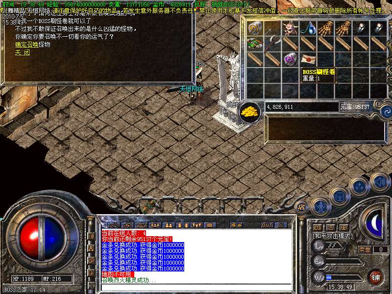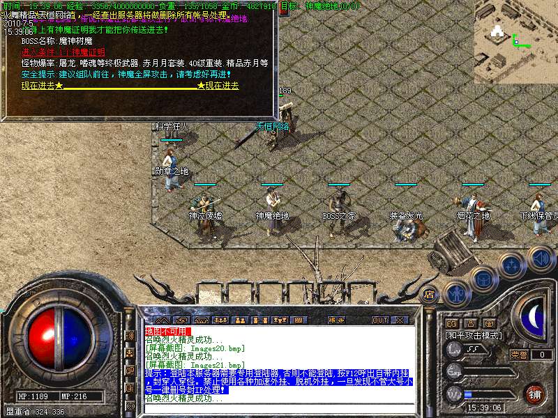 【怪物增加】土城药店每12小时刷新一只BOOS爆怪物攻城令牌1/1,封魔皇宫每12小时刷新一只BOOS爆终极武器爆率为5/1.