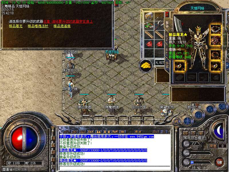 【装备回收】祖玛以上级别的装备都可以在土回收经验和元宝.让没用的装备也有它的价值.深受玩家之喜好.