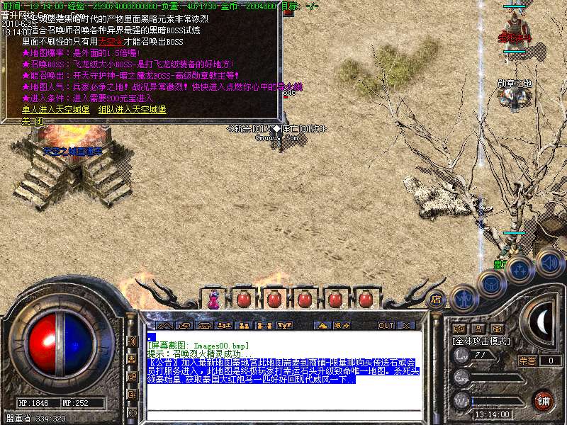 [版本特色01]新增加地图:天空之城(最适合召唤师召唤各种异界最强的黑暗BOSS试炼里面不刷怪的只有用<天空令>才能召唤出BOSS)!