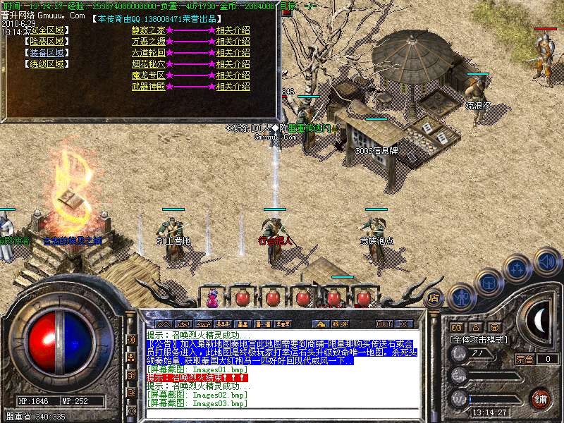 [版本特色01]快速升级:强烈推荐 贵族泡点 和 元宝练级地图!聚灵珠(大)和(小)也是快速升级的通道喔 魔龙 烟花教主 王者天将 摇钱树等BOSS会爆
