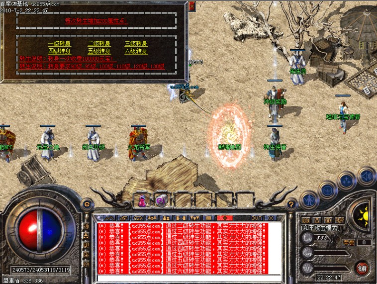 每天领取工资元宝.经验 免费变性 免费一键特修装备 可以购买药品