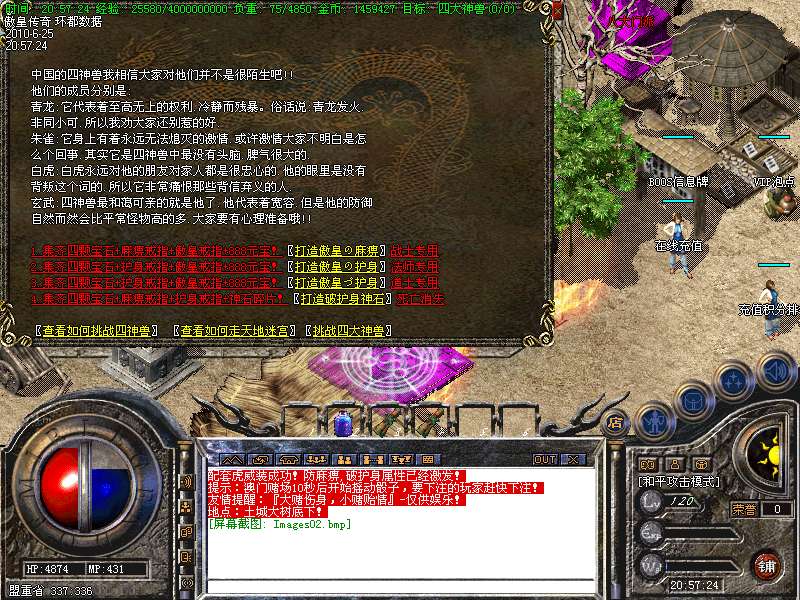 【铁血雄狮任务】服务器的四大神兽任务,只要集齐四个神石即可兑换一头超强大华丽的铁血雄狮座骑,骑上之后游戏速度快人一倍!