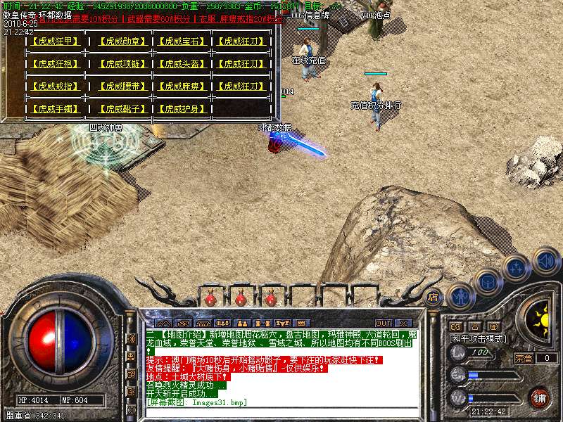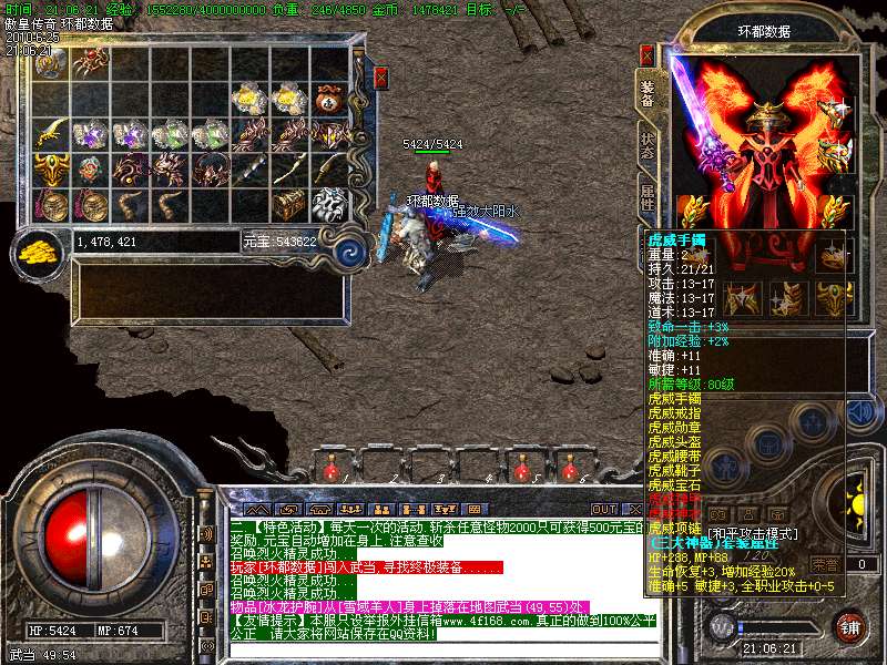 【特色活动】封魔谷皇宫内和土药附近每2小时刷一个老魔,系统每2小时还会在沃玛大厅举行一次大型送宝,可以暴出高级装备
