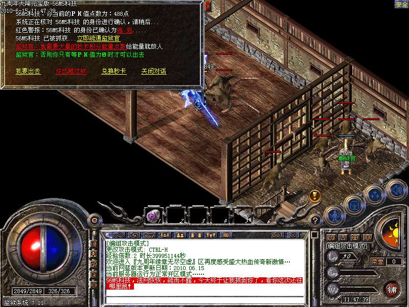 六、完美的监狱系统:只要存在着PK值超过10点以上,典狱官将对你进行抓捕并关押在一个特殊地图内无法施展你所以的技能..你当前的PK值点数为:点系统正在核对的身份进行确认,请稍后..红色警报:身份已确认为<逃犯>..已被典狱官抓获...立即疏通监狱官:如果你真想逃狱就给我秒卡能量值>也许会考虑。但是你也可以选择逃狱,但会被系统记录。